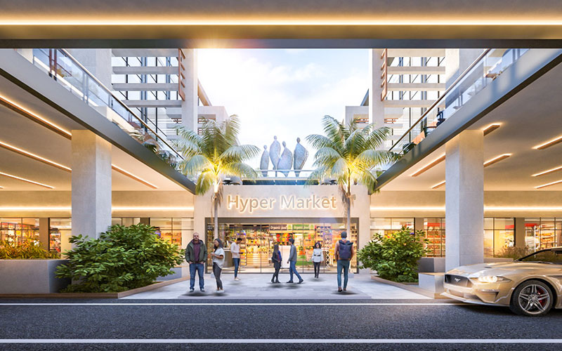 Within Najma Walk’s mixed-use layout, the hypermarket functions as the primary anchor around which the project’s daily activity naturally circulates. Its presence draws consistent customer movement from visitors who come for various purposes, office employees stopping after work, patients and their families visiting clinics, and shoppers exploring the surrounding retails, this creates steady all-week engagement rather than traffic concentrated only on weekends or peak shopping days.